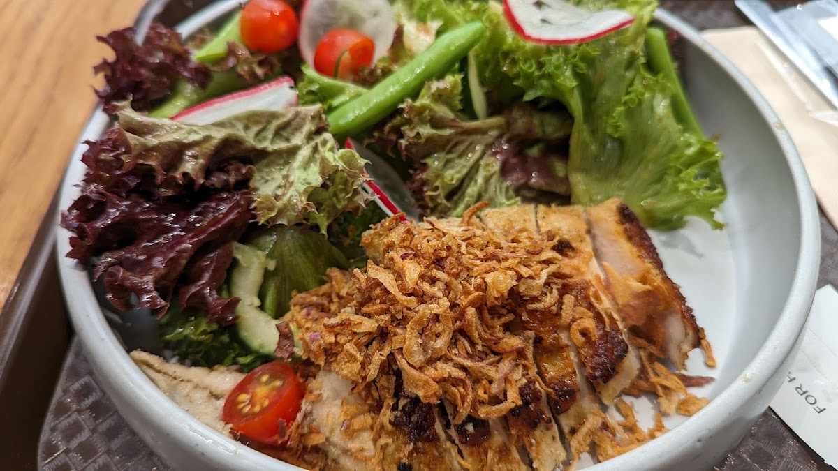 Au Bon Pain’s menu offers a mix of bakery items and light meals that lean toward health-conscious choices, something appreciated by its regulars who often seek something fresh but not heavy. Standouts include the pesto chicken sandwich and various bagels, like the cream cheese with smoked ham, which come up often in positive mentions. The almond croissant and a banana cake (เค้กกล้วยหอม) are favored among those craving a sweet bakery fix, while the cold-pressed juices provide a fresh complement to the food selection.